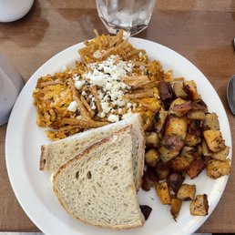 I'm limited to 5, but I'd totally give this 10/5 stars! Best biscuit I've ever had - the jam was also excellent. Biscuits and gravy was delicious - gravy was super flavorful! The chicken apple hash was also amazing! Coffee was great too - not bitter, not too sweet (I ordered an oatmilk latte with honey) Servings were quite large - wish I would have shared instead. But prices weren't bad. Quiet & quaint. Great service. We waited 30 minutes to be seated on a Friday at 11:30am in early August but it was totally worth it. Highly, HIGHLY recommend!!